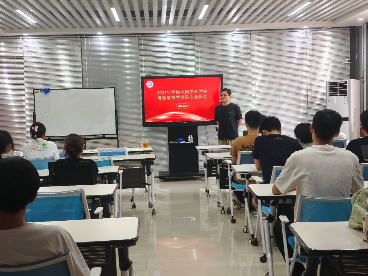在三号组团楼A1208教室召开2025年暑假放假暨消防安全主题班会。会议由班主任张龙主持,全体本科生参加。