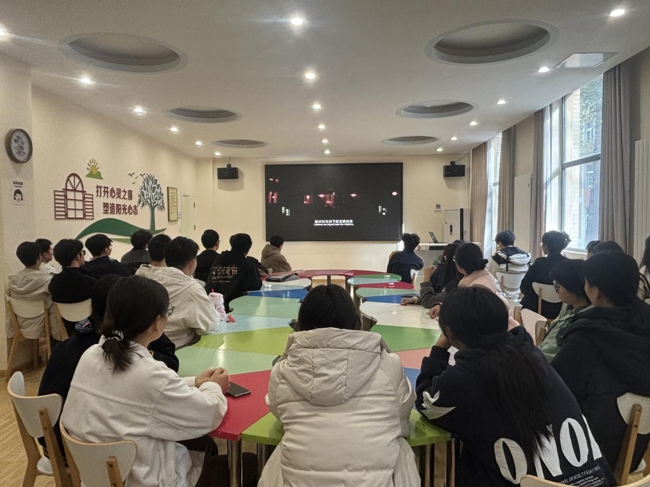 组织2025级新生于10月29日在心理健康中心109教室,开展以“探案寻真相,明辨树正观”为主题的观影活动。